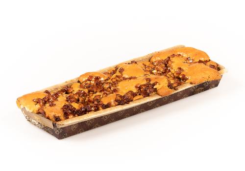 Rond brood, verrijkt met hazelnoten, amandelen, walnoten, rozijnen, appelstukjes en parelsuiker.