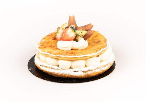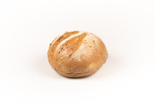 Rond brood, verrijkt met hazelnoten, amandelen, walnoten, rozijnen, appelstukjes en parelsuiker.
